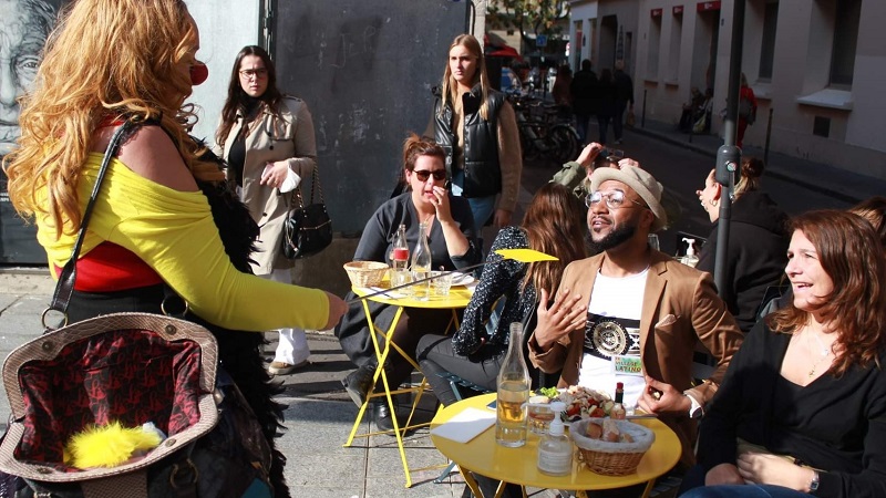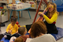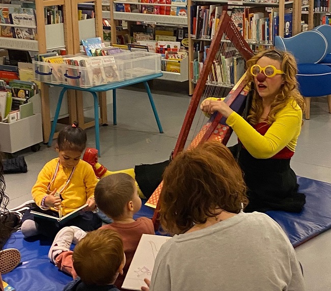 Dans le cadre de cette déambulation de 2H, la clown Jacqueline vient à la rencontre du public, les charme, leur déclame des poèmes, les chatouille de sa plume ou les mouilles de ses bulles… Elle se donne en spectacle et fait du public son partenaire de jeu au cours d’improvisations qui provoquent rire et surprise. Accompagnée de sa harpe en bandoulière, Jacqueline rythme le tout avec des instants musicaux.