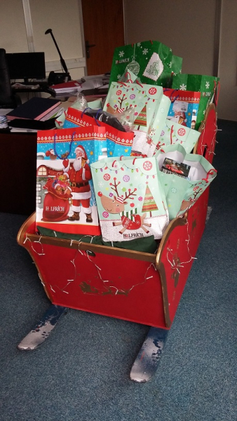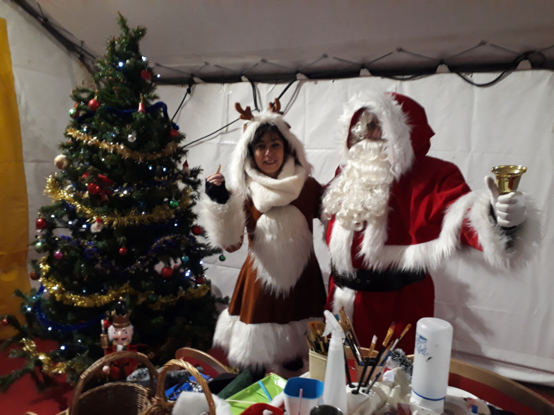 Un père Noël avenant, une maquilleuse déguisée en rennes et un petit traîneau pour transporter le maquillage et quelques cadeaux...