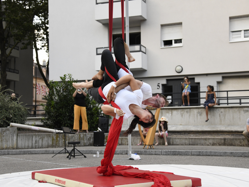 La musique et le mouvement se rencontrent finalement en haut d’un tissu très très haut… Une rencontre musicale et circassienne pour voir éclore un univers complet et riche avec un soupçon d’égarement. Une rencontre qui fait tout basculer et qui permet de rendre réel ce qu’on a imaginé étant enfant.
