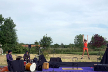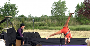 Danse sur fil, hula hoop, équilibres ... rythmés au son de la contrebasse, basse, batterie, clavier et chant.