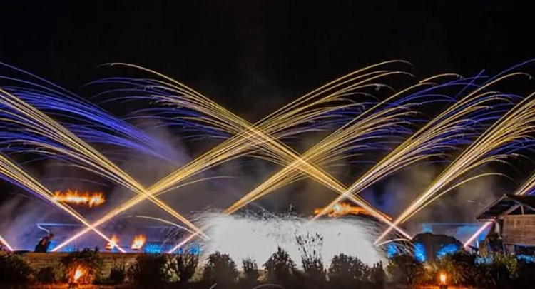 La cie Manda Lights s'est spécialisée dans la réalisation de feux d'artifices à échelle humaine. La mise en œuvre de nos produits pyrotechnique de proximité s'accorde aux rythmes et ambiances musicales de chaque tableau, tout en renforçant le caractère du site de jeu.
