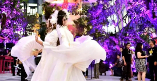 Une déambulation blanche et lumineuse avec échassiers pour créer des instants aussi amusants que féeriques.