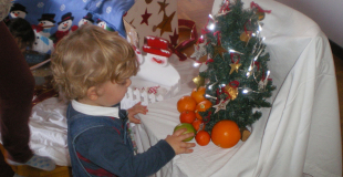 Un doudou tout doux, des bonshommes de neige voyageurs, promeneurs, baroudeurs et rêveurs, un cadeau tombé du traineau du père Noël et une ronde d'animaux de la forêt. Sans oublier les araignées de la maison, tisseuses de guirlandes, une fée de Noël, jouant les fées du logis... et même une petite orange qui se voudrait d'une autre couleur. Une orange, c'est orange. Oui, mais... quand on y met du sien, à l'heure de Noël tout est possible, non?