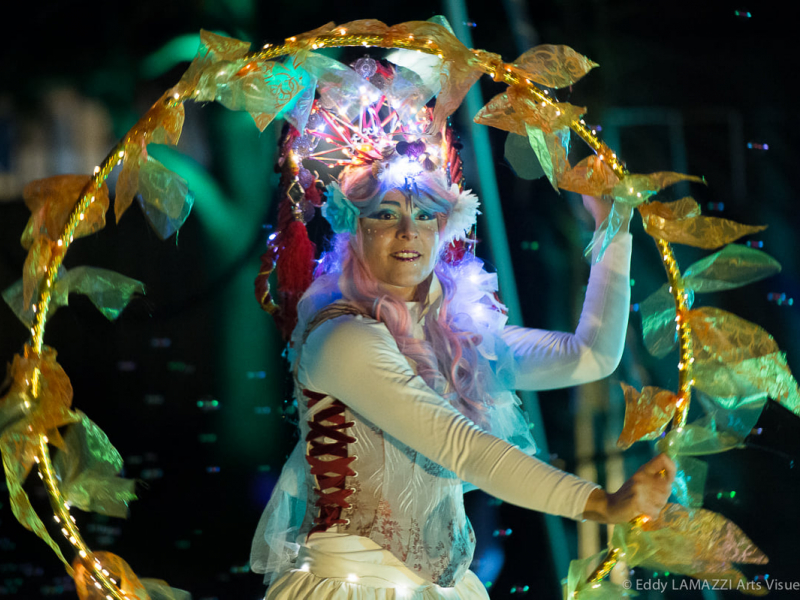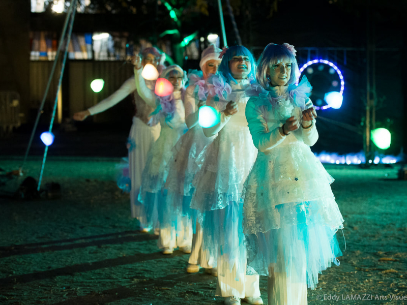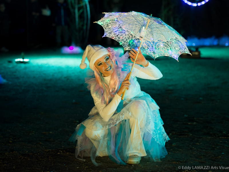 Ce spectacle de lumière LED onirique est un véritable enchantement pour tous les âges. Les danseuses, en costumes blancs et pastels manipulent une multitude d’objets lumineux laissant des trainées multicolores dans les airs. L'artiste aérienne vole et tourbillonne dans les airs pour encore plus de poésie et de spectaculaire. Enfin des effets pyrotechniques viennent sublimer le spectacle avec des pluies d'étincelles.