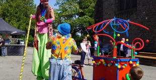 Notre parade de clowns est multi disciplinaire, à pied, en échasses, en vélo, les artistes animeront votre fête, brocante, marché dans la joie et la bonne humeur !