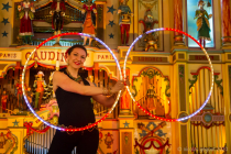 Spécialisée dans la hoop dance depuis plus de 10 ans Lunart-x propose des prestations de hula hoop aux thèmes variés : charleston, danse du monde, Pin-up, urbain, steam punk… des ateliers de découverte ludiques et accessibles à tous ou encore des numéros de hula hoop enflammé ou lumineux pour un effet "wahou" garanti.