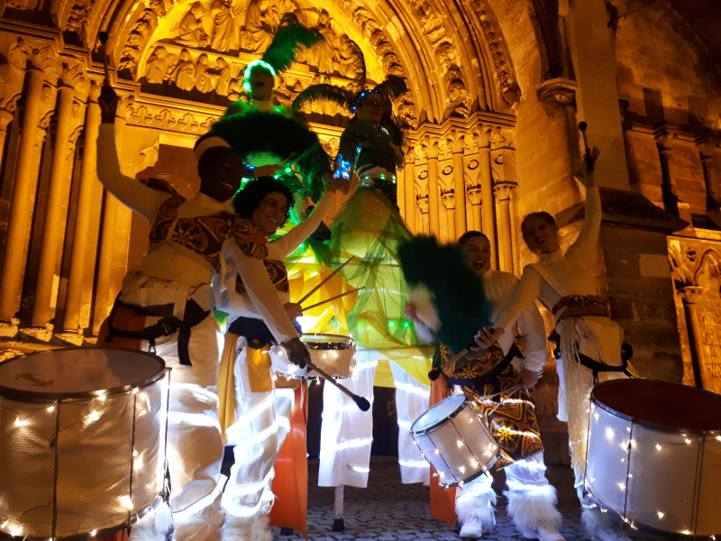 Parade Lumineuse avec échassiers et musiciens percussionnistes et/ou avec instruments mélodiques