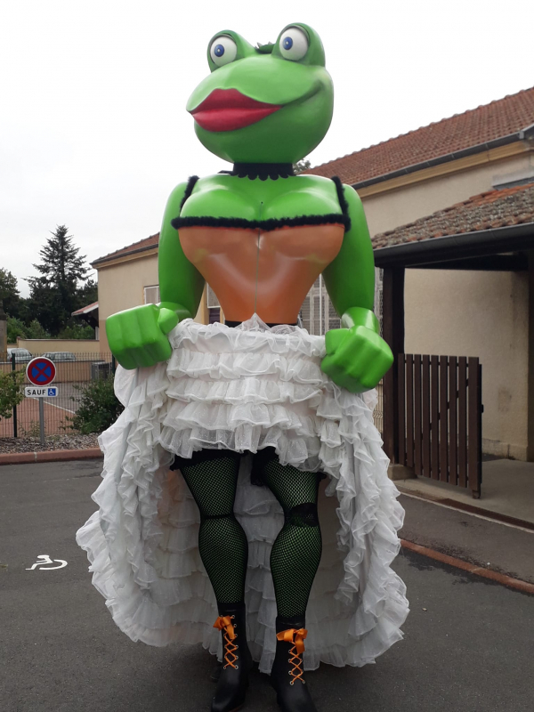 - Une déambulation de 2 ou 3 Grenouilles géantes et leurs danseuses/accompagnatrices. (possibilité de 2 déambulations de 1h30 ou de 3 de 1h00 chacune)