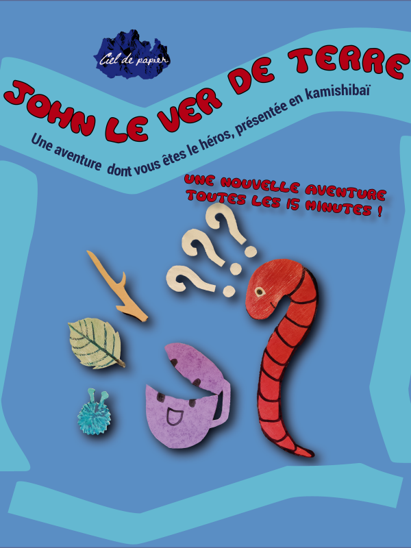 John le ver de terre est un spectacle en kamishibaï avec pour protagoniste un ver de compost. Les spectateurs vont devoir par leur choix aider John à rejoindre le compost. Chaque aventure dure 15 minutes et la comédienne peut jouer en continue pendant 2 ou 3h en sachant qu'il n'y aura jamais deux aventures identiques. Ce spectacle, pour un public de 3 à 99 ans, a toute sa place dans des festivals ou des marchés lors desquels le public pourra profiter d'une, deux ou trois aventures suivant leur envie.