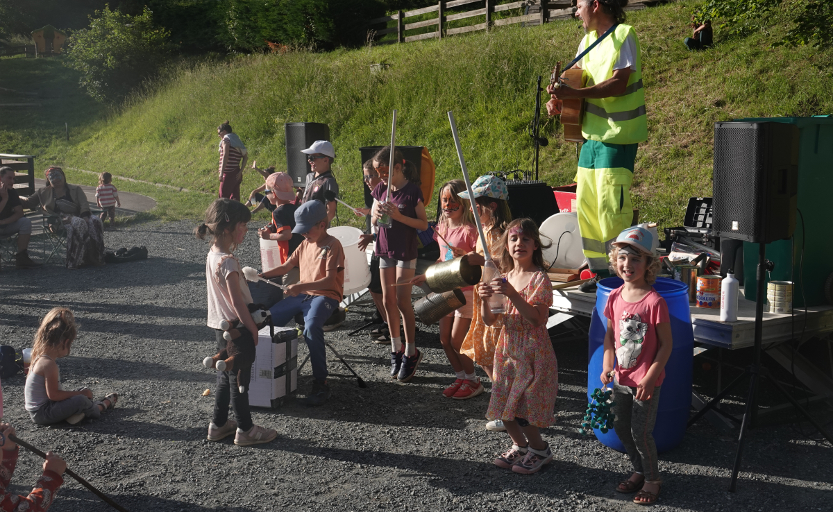 Tout cela de manière ludique, joyeuse et surtout interactive. Le public est questionné pendant le spectacle et est amené à participer à certaines constructions, mais surtout à chanter, danser et pour certains à monter sur scène pour former un véritable orchestre qui accompagnera notre « éboueur- musicien ».
