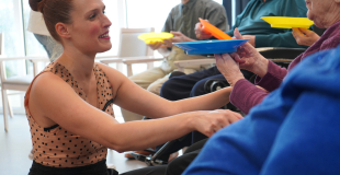 Un atelier d’initiation à la jonglerie avec foulards, balles, assiettes chinoises… incitant au maintien d’un potentiel physique de motricité globale et fine grâce à des exercices adaptés aux différentes pathologies