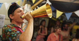 La criée publique est un spectacle participatif où le public est amené à écrire des messages : d'amour, de révolte, de poésie, de colère, chanson, adressé à quelqu'un, pour le peuple...
