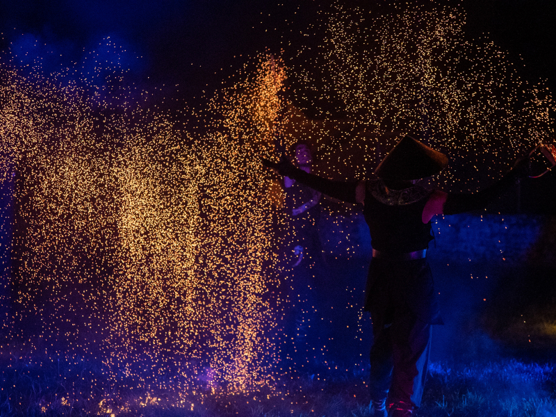 Éprouvé depuis 2015, le spectacle Cendres de Feu s'adapte pour diverses jauges du public. Nous proposons deux formules : une de 25 minutes et une de 35 minutes.