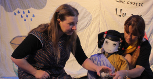 Contes d'hiver pour les tout-petits Spectacle 0/5ans.Ce spectacle dédié aux tout-petits nous emmène dans la magie de l'hiver.Des matriochkas (poupées russes) jouent à cache-cache, monsieur pouce découvre la neige et une souris... Par Domitille Gindre - Conteuse