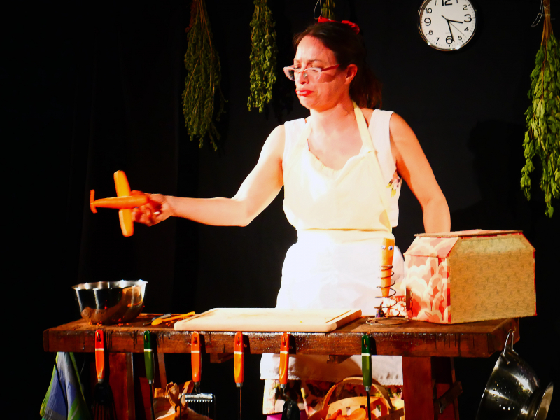 Un spectacle de clown sans paroles mais plein d'humour et de rythme ! Ici, on incite les plus réticents à s'intéresser aux légumes ! En fin de représentation, le public est invité à goûter la soupe préparée sur scène.