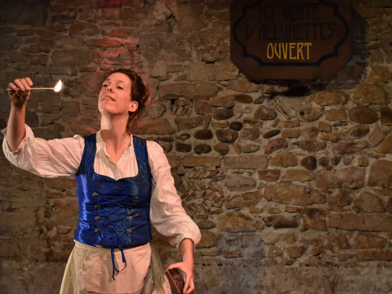 Offrez un spectacle de Noël mêlant contes et poésie! La compagnie Les Enfants Sauvages vous propose une adaptation de trois œuvres du célèbre auteur danois H.C. Andersen. Le personnage de la marchande d'allumettes est le fil conducteur du spectacle. Chaque allumette craquée lui inspire une nouvelle histoire qu’elle partage aux spectateurs avec douceur, humour et tendresse.