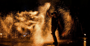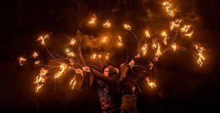 Ce spectacle de feu son & lumière se produit avec deux ou trois artistes.