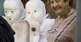 Ces personnages féminins vêtus de blanc, au masque naïf, se laissent regarder et permettent de projeter nos interprétations diverses...que font-elles? D'où viennent-elles? Où vont-elles?
