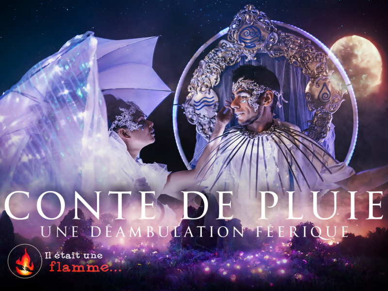 La compagnie Il était une flamme est fière de vous présenter sa toute dernière création : "Conte de Pluie", une déambulation en compagnie de fascinants personnages oniriques , empreints de féérie.