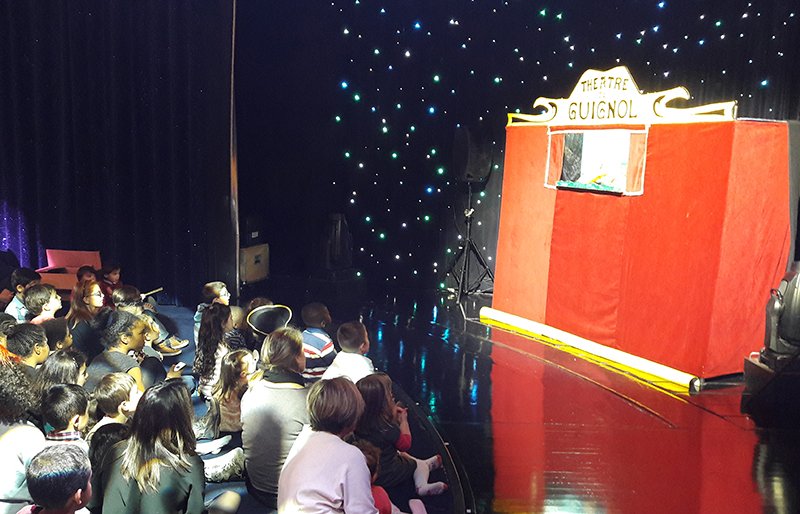 Notre théâtre ambulant est 100% autonome. L'éclairage et la sonorisation sont prévus. Nous venons avec le castelet le plus adapté au nombre de spectateurs attendus et aux dimensions de votre espace de réception (salle de réunion, salle des fête, mairie, etc.).