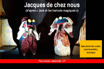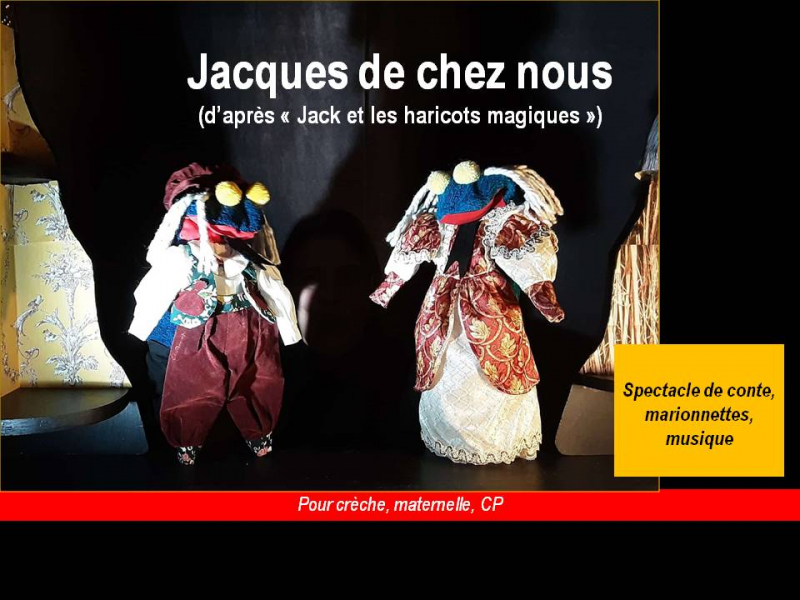 L’histoire se déroule dans la ville où se joue le spectacle (une ferme à – nom de la ville, village….) C’est un conte qui parle de la hiérarchie sociale : la pauvreté-le riche / la faim-l’opulence. Le vieil homme est la représentation paternelle du père absent. Il permet non seulement les aventures mais surtout le retour et le maintien du bien-être de la famille. Les 3 tiges de haricots magiques représentent la trinité des choix. Jacques en choisit une ce qui lui permettra un avenir serein. Son choix est purement spontané, nullement réfléchi. C’était sa destinée. La femme de l’ogre pourrait être l’ange-gardien de Jacques, femme sans enfant elle devient alors sa protectrice, celle qui l’aide, le nourrit. L’ogre, du fait qu’il est châtelain, cache sa nature profonde. Il vit dans le paraitre-être. C’est un conte qui parle d’espoir et de courage, de solidarité.