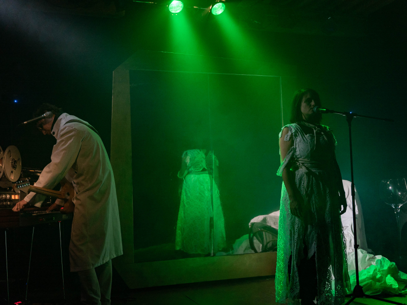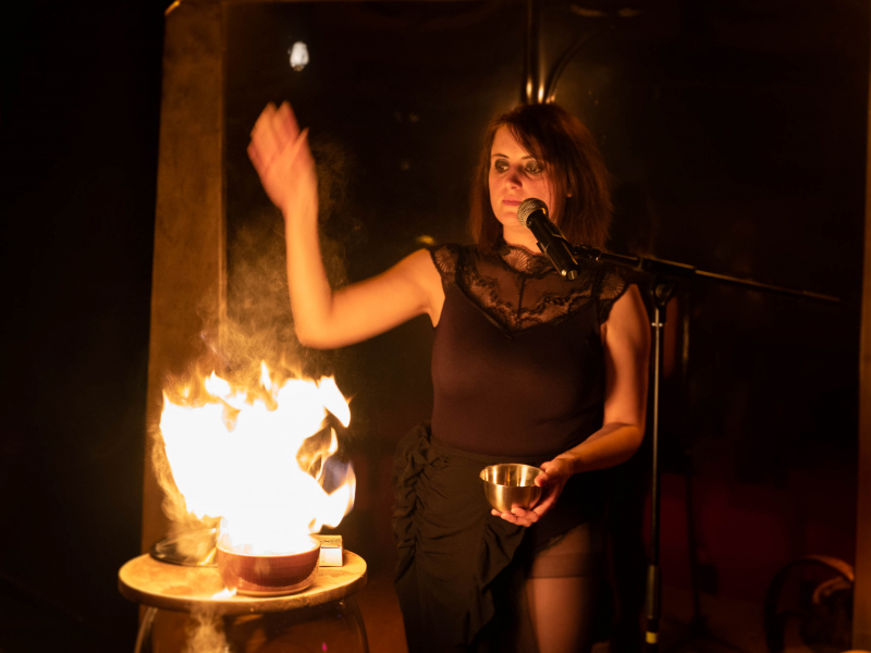 La musique est un élément essentiel du spectacle. La voix d’Alissia se promène sur des arrangements planants : accords de guitare et de clavier parfois détournés pour produire de nouveaux sons étonnants. Les ambiances lumineuses du spectacle sont feutrées et soignées. Bougies, lampe frontale... L’idée est d’amener le spectateur dans l’intimité de LA FEMME PAPILLON.