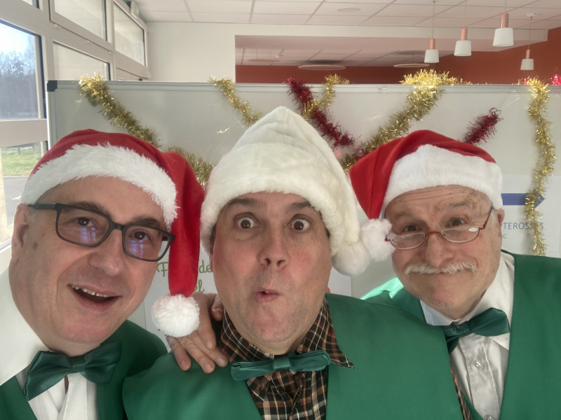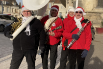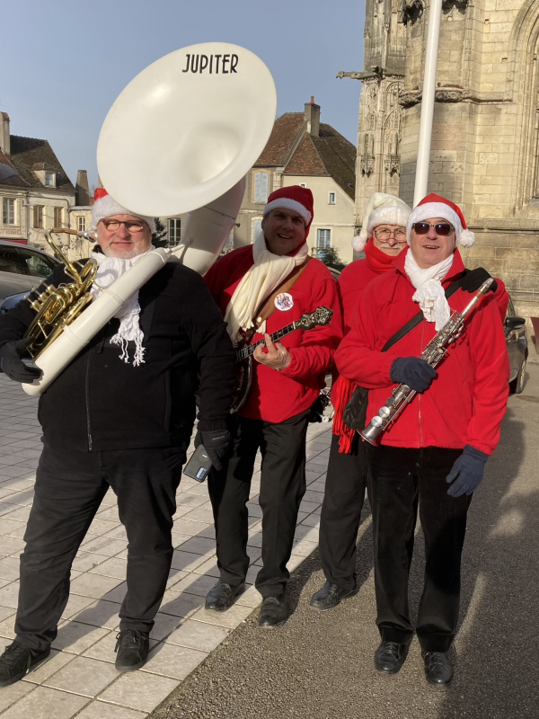 Nous proposons pour la période de fin d’ année et pour les festivités de Noël en particulier, sur les marchés et fêtes de village, des déambulations musicales, en tenue rouge et blanche avec bonnet( voir photo). Le répertoire musical, entre jazz traditionnel, buiguine, chanson française et chant de noël revisité jazzy.