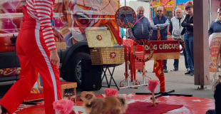 Au programme : magie comique, musicien burlesque, jongleries et équilibres, animaux artistes (chien, chats et souris), assiettes tournantes et ballons sculptés.