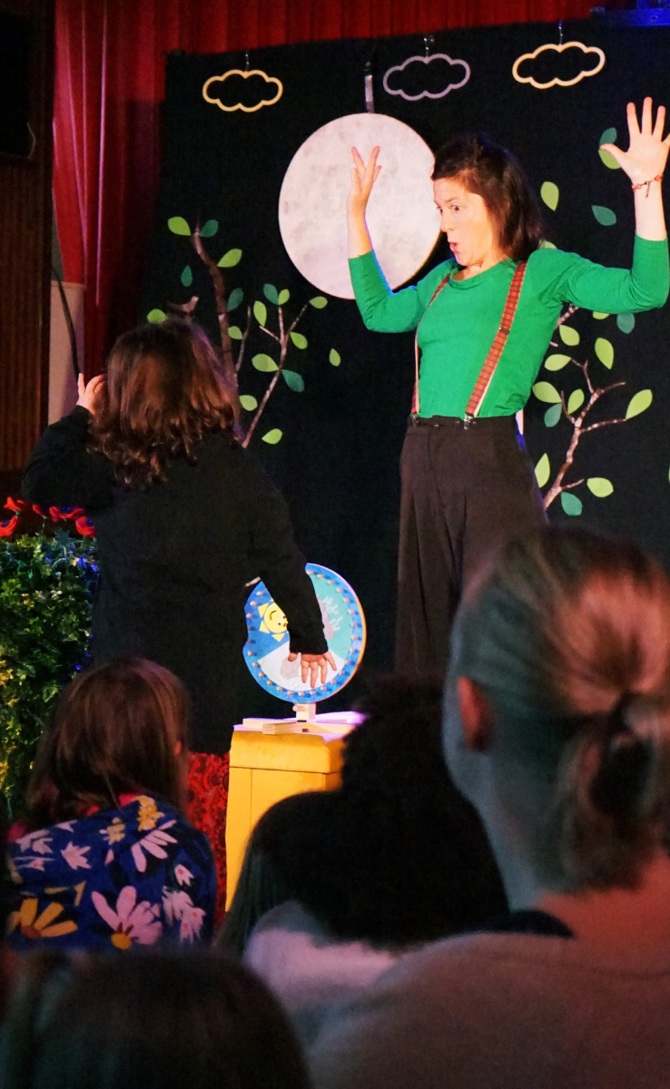 Chez Oz est proposé en intérieur ou extérieur, pour une jauge n'excédant pas 80 personnes.Ce spectacle se joue au sol, en proximité. Les enfants sont invités venir piocher une comptine ou tourner une roue...