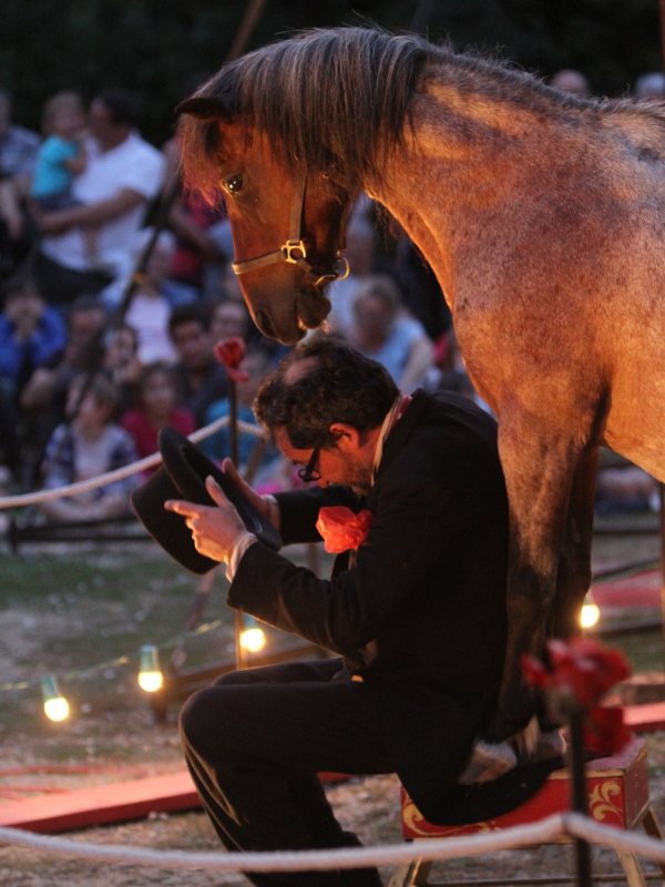Entrez, entrez, le spectacle va commencer. Vos enfants seront même sollicités pour nous assister dans nos démonstrations et pourront s’émerveiller de mettre un cheval debout ou de l’asseoir.