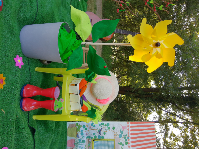 Débute alors une ronde bucolique où notre héroïne en herbe va suivre le vol d'une abeille, converser avec un tournesol amoureux, regarder pousser les légumes, emplir de fruits son p'tit panier tressé, buller avec une libellule... Bref, flâner dans une nature qui regorge de trésors ; et puis...rien de tel qu'un p'tit tour de jardin pour se remettre les idées en place !