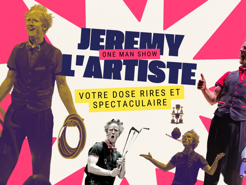 Voici un artiste qui diffuse le bonheur! Jérémy L'Artiste allie la magie du cirque et l'humour avec une énergie sans faille. Alternant, jonglerie, magie, plaisanteries et exploits loufoques, le public, s'esclaffant de rires, est émerveillé par les performances excentriques de ce protagoniste sans limites.