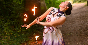 La danseuse manipule ainsi bâton, mains de feu, parapluie, bolas, artifices, ...mais aussi des objets lumineux (hula hoops, pixels poïs) synchronisés avec la musique, et propose un spectacle aussi envoûtant qu'impressionnant. Ses mouvements tout en élégance et en finesse sauront ravir vos invités. Alternant des moments plus doux et d'autres plus dynamiques, ce seule en scène est très varié et saura vous captiver du début à la fin.