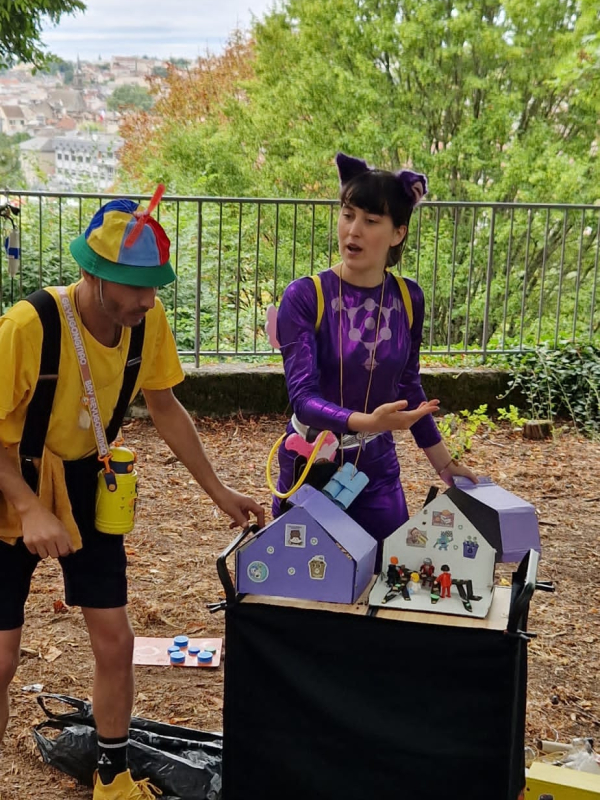 Un duo de Lutins comiques, apprentis magiciens et jongleurs comiques Gaston & Taloche et la Malle MagiqueDeux cousins lutins, maladroits mais terriblement attachants, découvrent une mystérieuse vieille malle ayant appartenu à leur grand-père magicien… disparu... Par Cie Ballarom