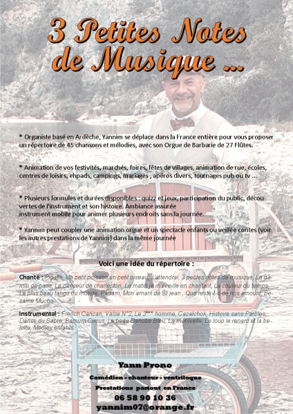 * Yannim peut coupler une animation orgue et un spectacle enfants ou veillée contes (voir les autres prestations de Yannim) dans la même journée