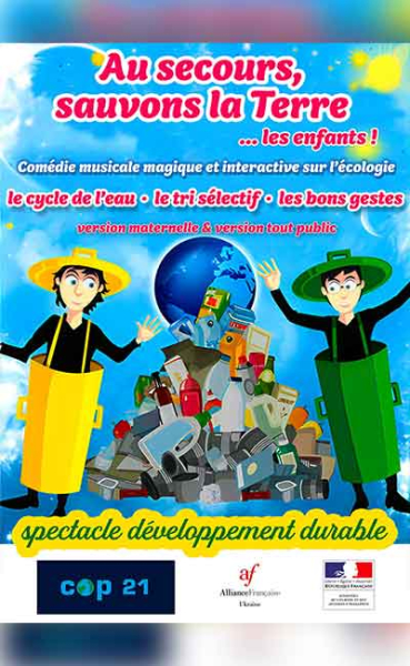 En plus de ses 1200 spectacles déjà joués, notre spectacle sur la transition écologique pour les écoles maternelles a été choisi par le Ministère des Affaires Étrangères pour représenter la France en Ukraine pour la COP21 en 2015 !
