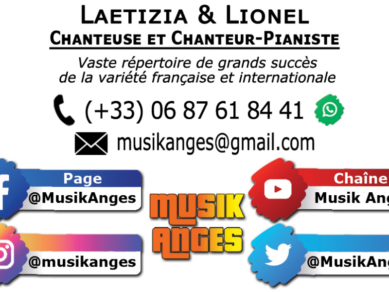 Notre duo Musikanges est composé de Laetizia ( chanteuse ) et de Lionel ( chanteur -pianiste).