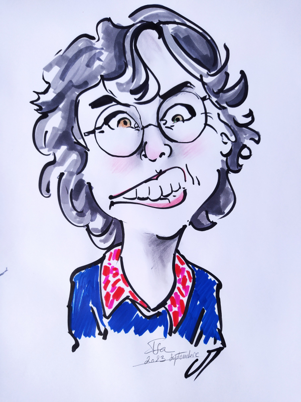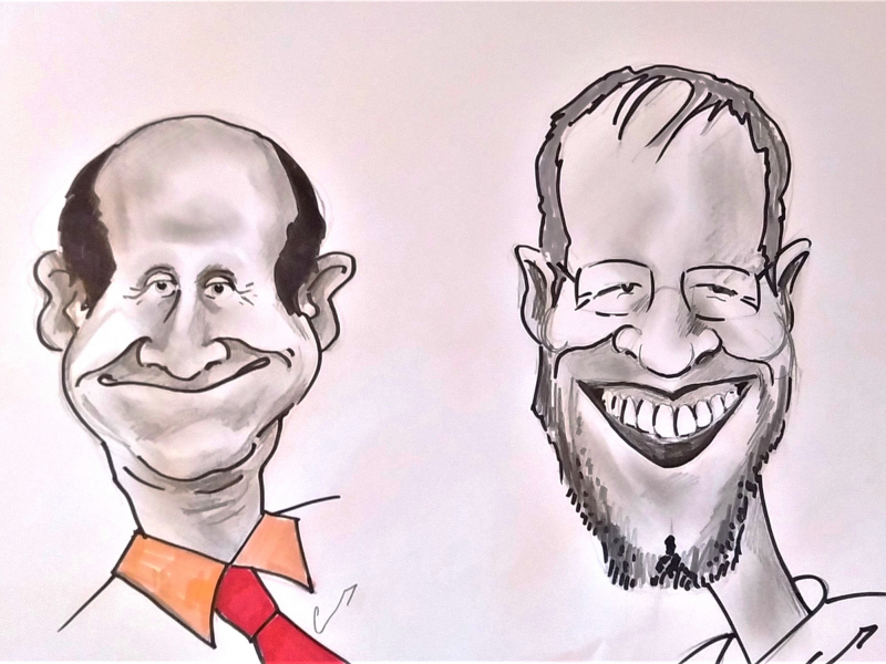 Caricaturiste de vos événements en Isère Le caricaturiste dessine avec bienveillance le visage de vos invités en +/-5 minutes à tous vos événements.Prestation de 2h, 3h, 4h.Caricatures dessinées à la main, encre de chine colorée,... Par Betty