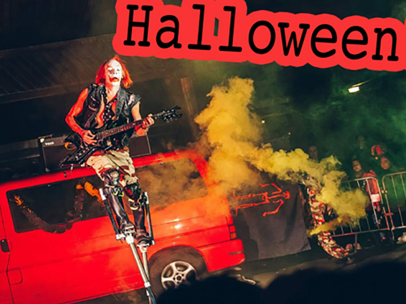 Pour 2h d’animation “ HALLOWEEN DISCO “ , sur échasses et au sol, avec sono mobile et participation du public :