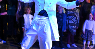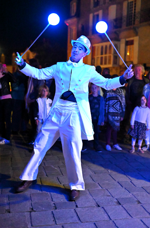 Pour un effet visible de loin, nos deux échassières et notre jongleur au sol, tous blancs immaculés, déambuleront sur votre Place ou vous embarqueront pour une ballade dans vos rues illuminées. Leur passage enchantera petits et grands de douces interactions lumineuses. Des saynètes chorégraphiées amplifient les moments de beauté et de féerie.