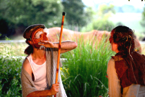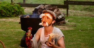 Les deux comédiens jouent sous des masques inspirés de la commedia dell' arte et fabriqués de leurs mains. Le jeu du masque impose un jeu en relation avec le public qui laisse une large place à l’improvisation.