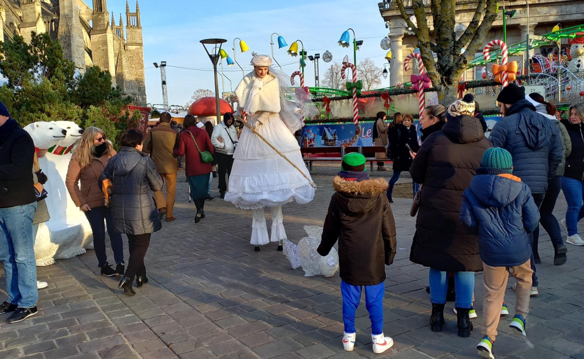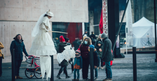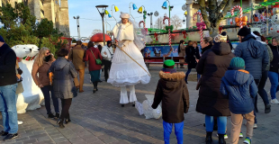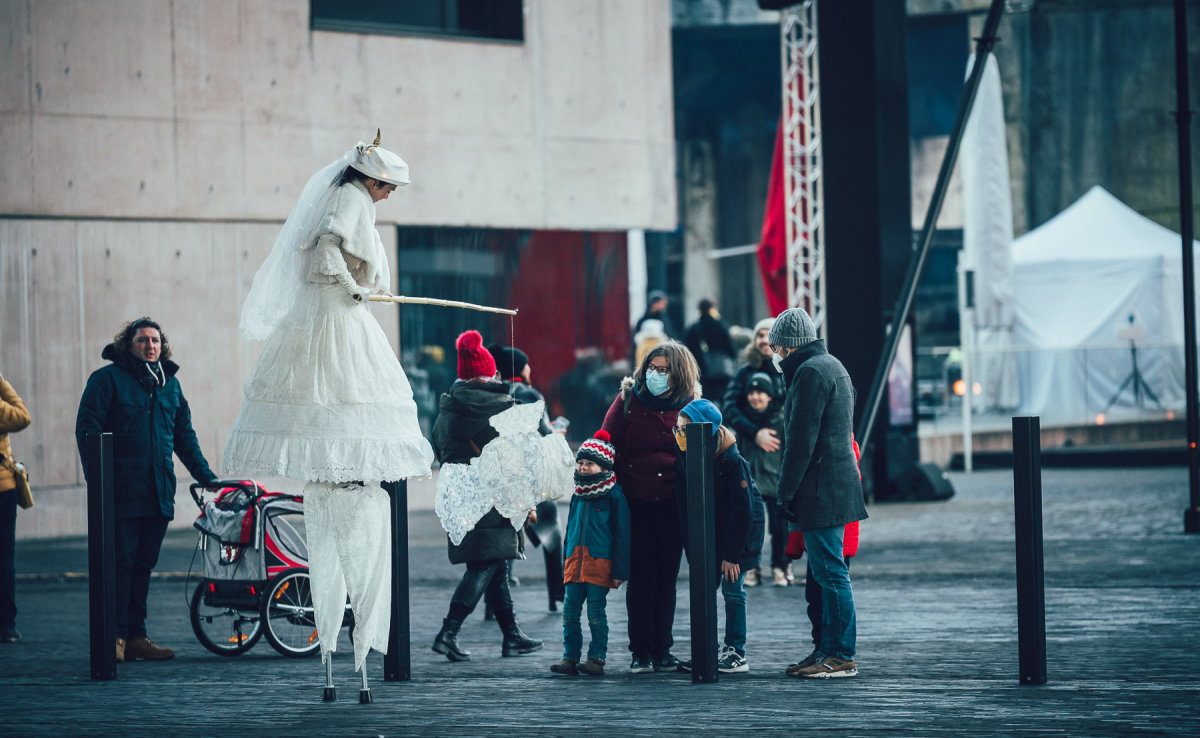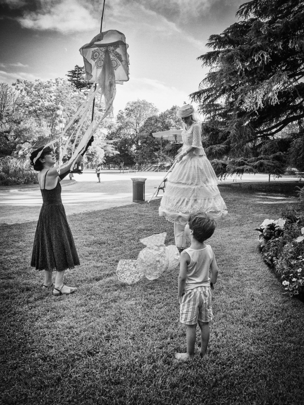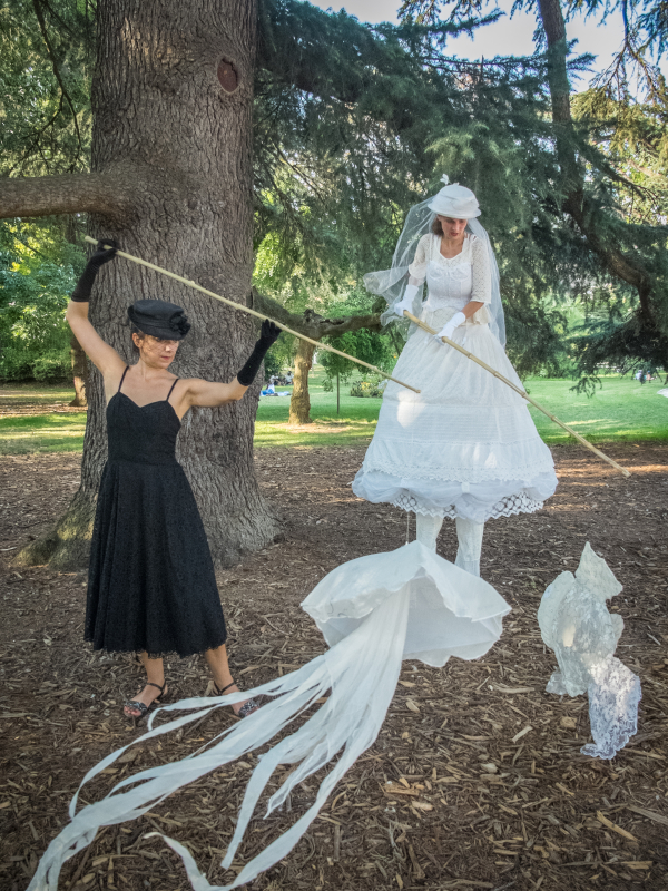 Les Mer'veilles sont une déambulation poétique en échasses/danse et avec des marionnettes *toutes en dentelle*. Il s'agit d'une création de la Compagnie AiÔn/Toulouse.