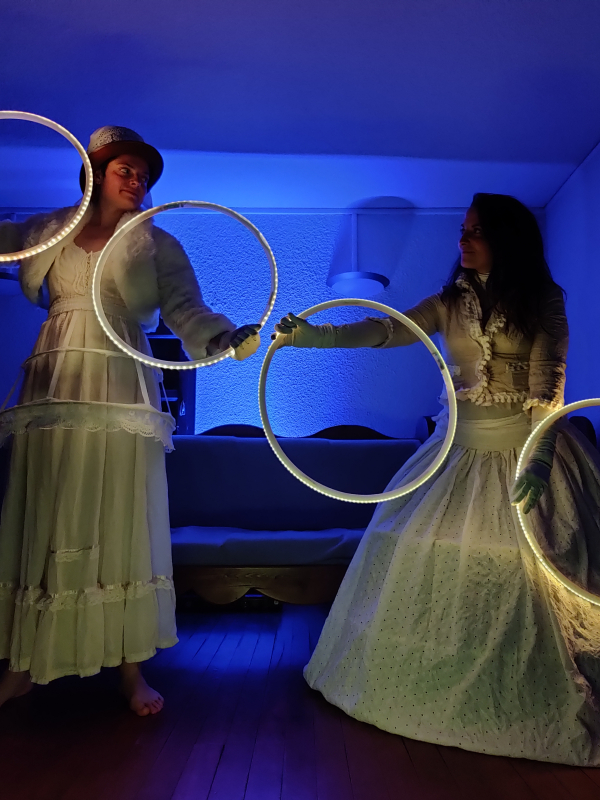 Des Lutins Jongleurs Lumineux et bien rigolos ! Quatre lutins déjantés et pleins d’énergie envahissent les allées des marchés de Noël et les rues des villages pour répandre la magie des fêtes !Avec leur superbe charrette décorée et... Par Cie Ballarom