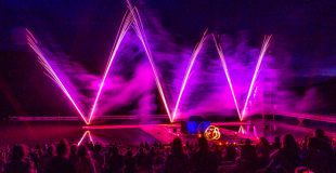 Une mise en valeur du spectacle d’origine où chaque tableau se voit agrémenter d’une teinte et d’une énergie particulière. Les temps forts sont ponctués par des comètes d’or et d’argent, les moments plus subtils, renforcés par un embrasement terrestre et des fontaines colorées.