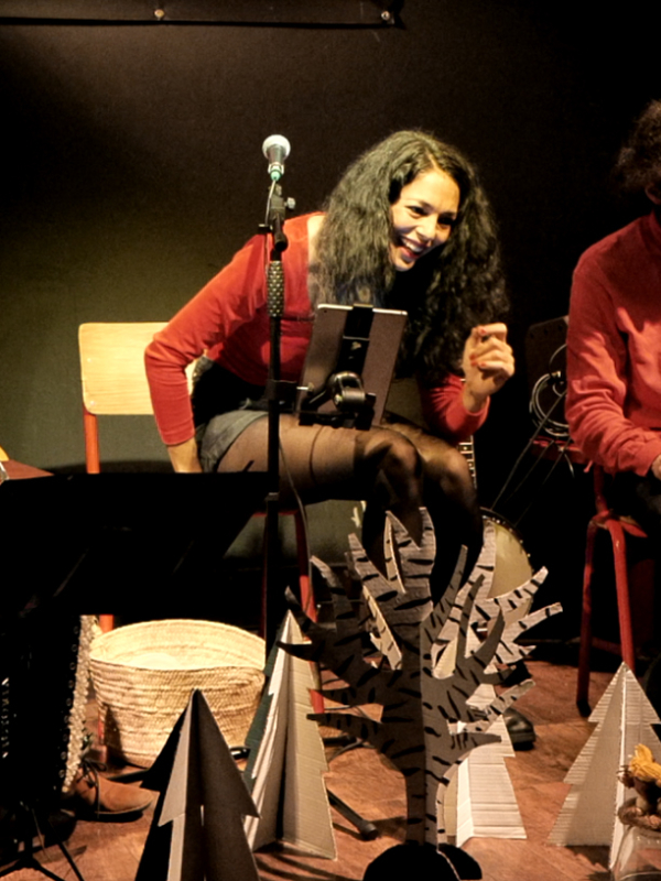 Le spectacle se compose de parties contées, avec la manipulation d’éléments de la scénographie, et de sept chansons originales, en français.
