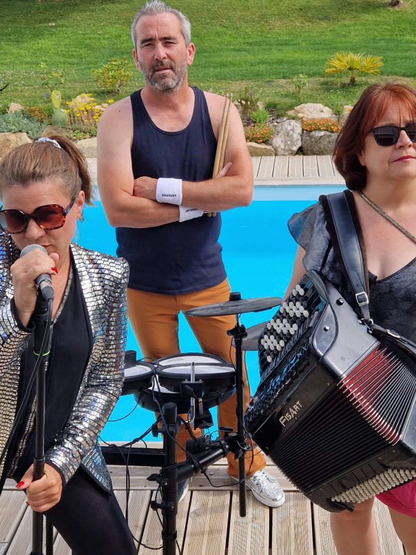 Une voix, un accordéon chromatique et une batterie électronique, dans la bonne humeur des années 80, Le trio acoustique de disco décalée, vous fera passer un moment convivial et énergique, sur les traces de Michaël Jackson, Boney M, Les Rita Mitsouko et autres Indochine... C'est parti pour 1h30 de musique!