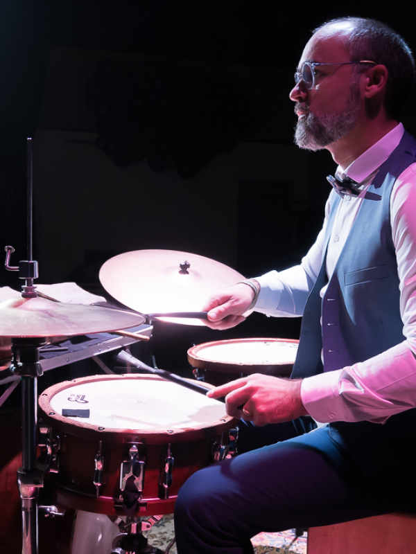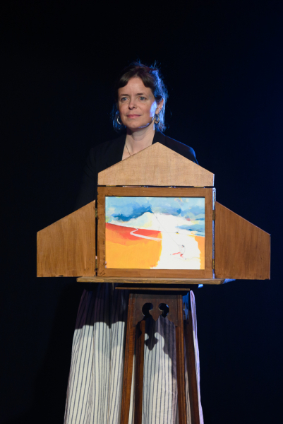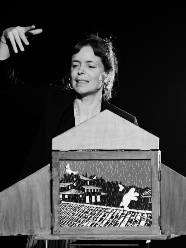 Escales c'est une odyssée avec trois histoires au kamishibaï (théâtre d'images d'origine japonaise), dont une réalisée en papier découpé et rétro-éclairée, des textes poétiques originaux et une création sonore à la batterie et autres instruments percussifs.