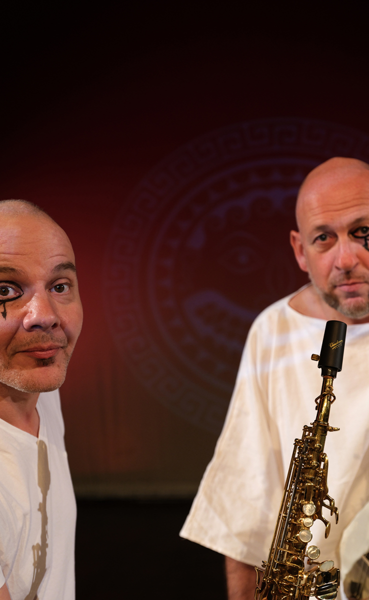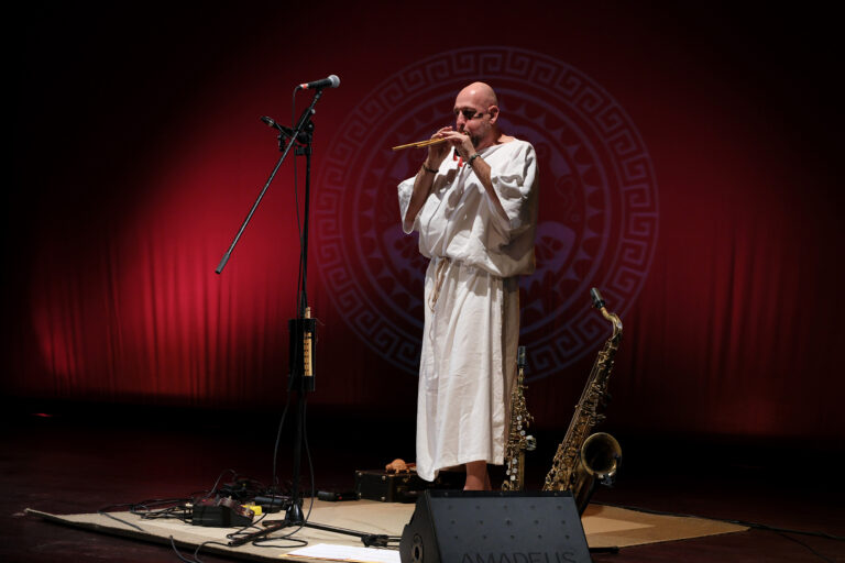 Deux musiciens-explorateurs nous emportent dans un concert ludique à la découverte de la musique dans l’Antiquité. Entre passé et présent, ils nous font découvrir, dans un jeu de miroirs des mélodies et des instruments vieux de deux mille ans. Ils nous content les récits mythologiques sur l’origine de nos instruments à cordes et à vent et leurs évolutions. Comment Hermès a inventé la lyre? Pourquoi Athéna n’aimait pas le aulos? Un concert original où dialoguent instruments antiques et modernes sous le regard des mythes et des dieux.