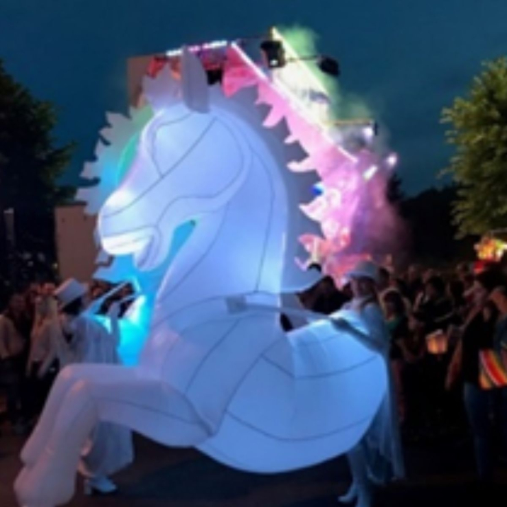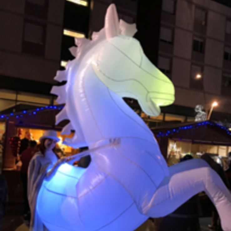 La Féérie équestre est une très belle animation de chevaux gonflables et lumineux qui déambulent, dirigés par des comédiens ou comédiennes, au milieu de votre évènement.