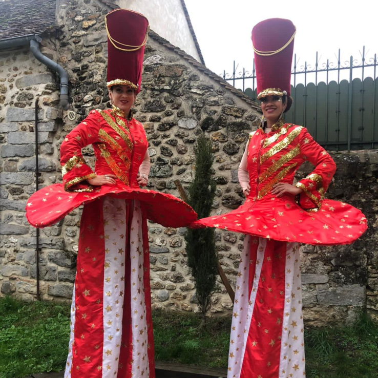 Les Groom Circus sont des échassières hôtesses vêtues de somptueuses robes sur lesquelles sont suspendues... des boules. Mais pas n'importe lesquelles ! De magnifiques boules rouges et or garnies de friandises, ou autre surprises selon le thème choisi. Bienvenue dans notre cirque de luxe !